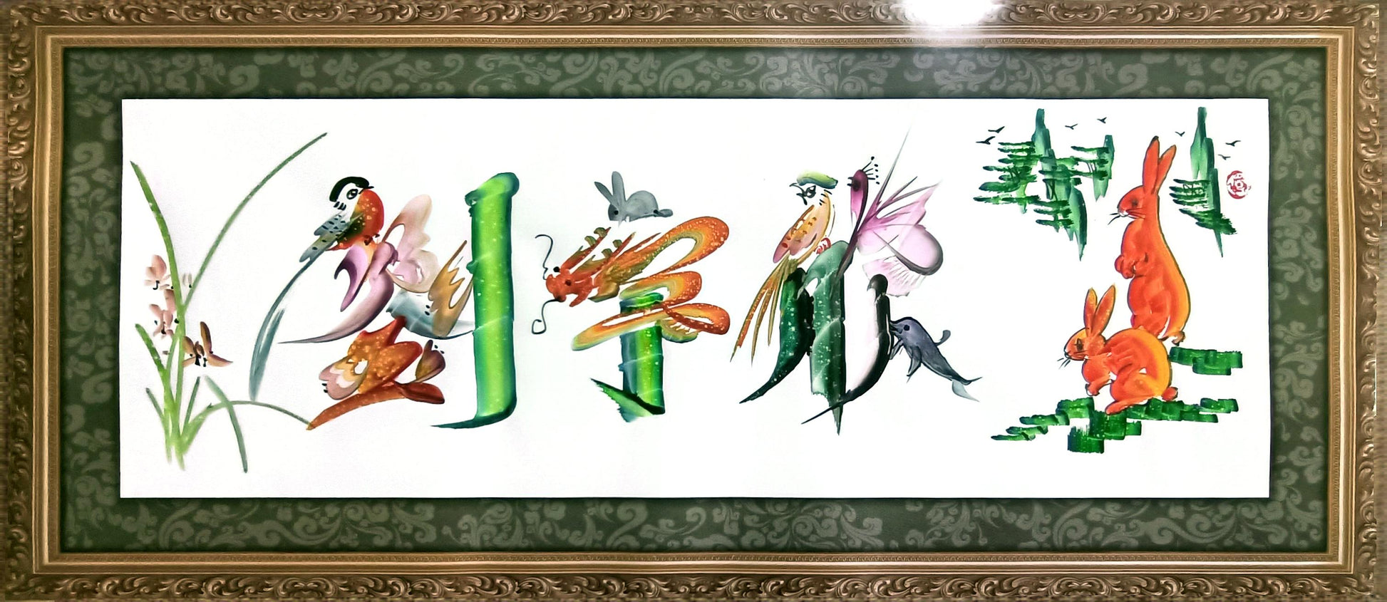 您可以选择在名字左侧/右侧分别出现什么图案(可供选择的图案有兰花/竹子/生肖属相等),作者可以在空白处用黑色墨水添加特殊信息(例如"周年纪念日"、"节日"、"星座"、"公主"、"万事如意"等),作者将确保您的想法得到完美实现!
